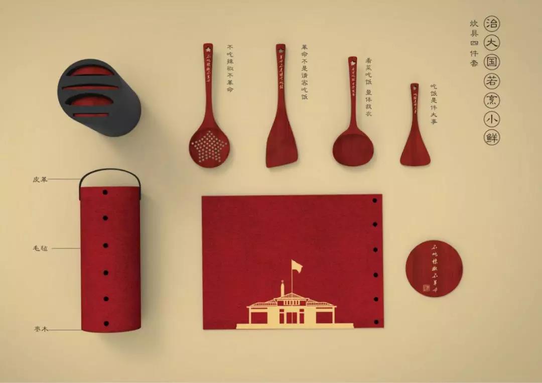 此款炊具全套恰似暗指“治强国若烹小鲜”的喻指,系统提示党团员们应坚定松软的观点。炊具应用意味着黑色校园文明的枣木材质,包罗漏勺、铲子、汤勺和饭勺四件,挂扣处思路为六星外观,手柄处刻着毛执行主席的杰出典范吃饭语录,下面离别将红六星、红旗轿车、火花、红丝巾属性融合外壳中。毛毡包装袋袋盒思路的十分奇秒,将其上扣子翻动后用做为高温垫操控,枣木的包装袋袋盒底板还用做为高温板操控,非常大品质搞定包装袋袋盒的重新操控,既环保健康又雅观。