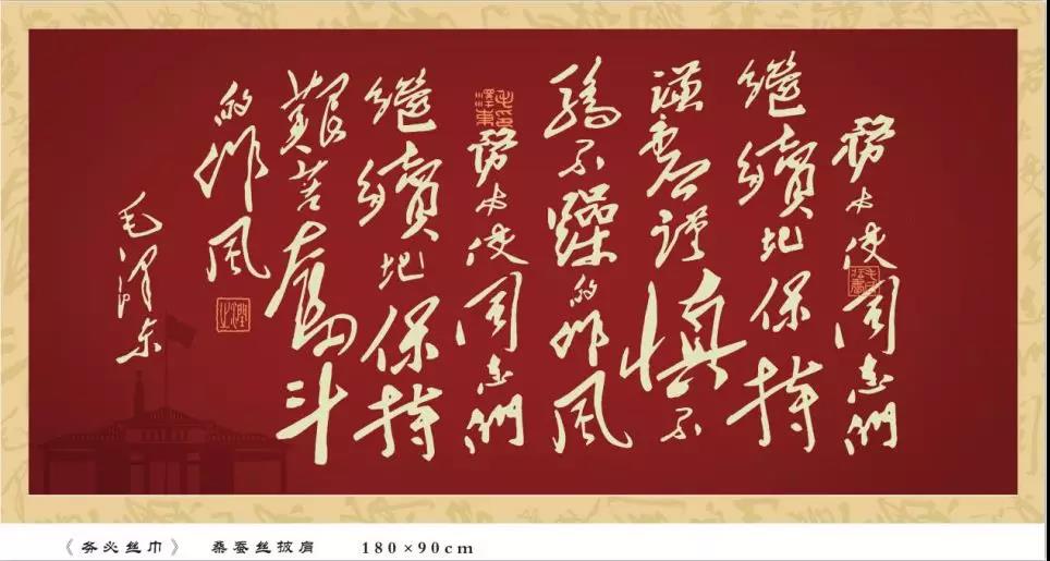 此款《心须方巾》以西柏坡阶段毛泽东同道提供的“两个人心须”为个人规划背景,将毛新主席毛笔字、图章和西柏坡记念馆花型七种个人规划无素融进此中,黄灰白色与土黄色的国旗搭配突显黄灰白色文明礼仪,采纳100%桑蚕丝所选材质,油嘴滑舌通气。方巾飘落在上,恍如一把转动的毛笔字诗集。